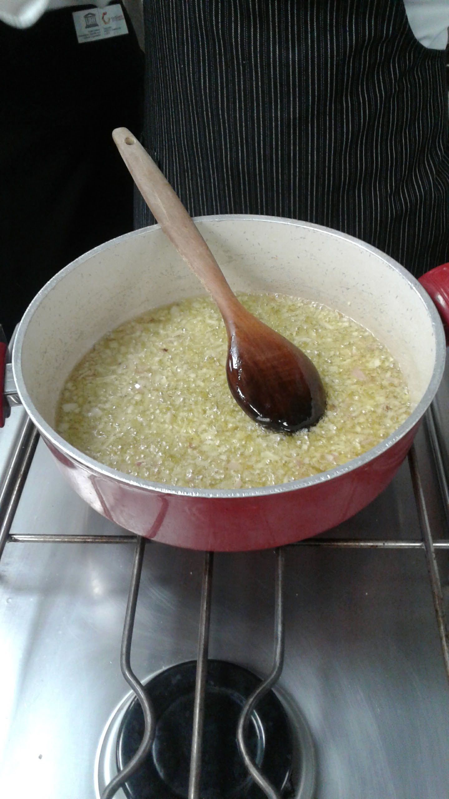 In a large stockpot, melt the butter and sauté the shallots and garlic until translucent.