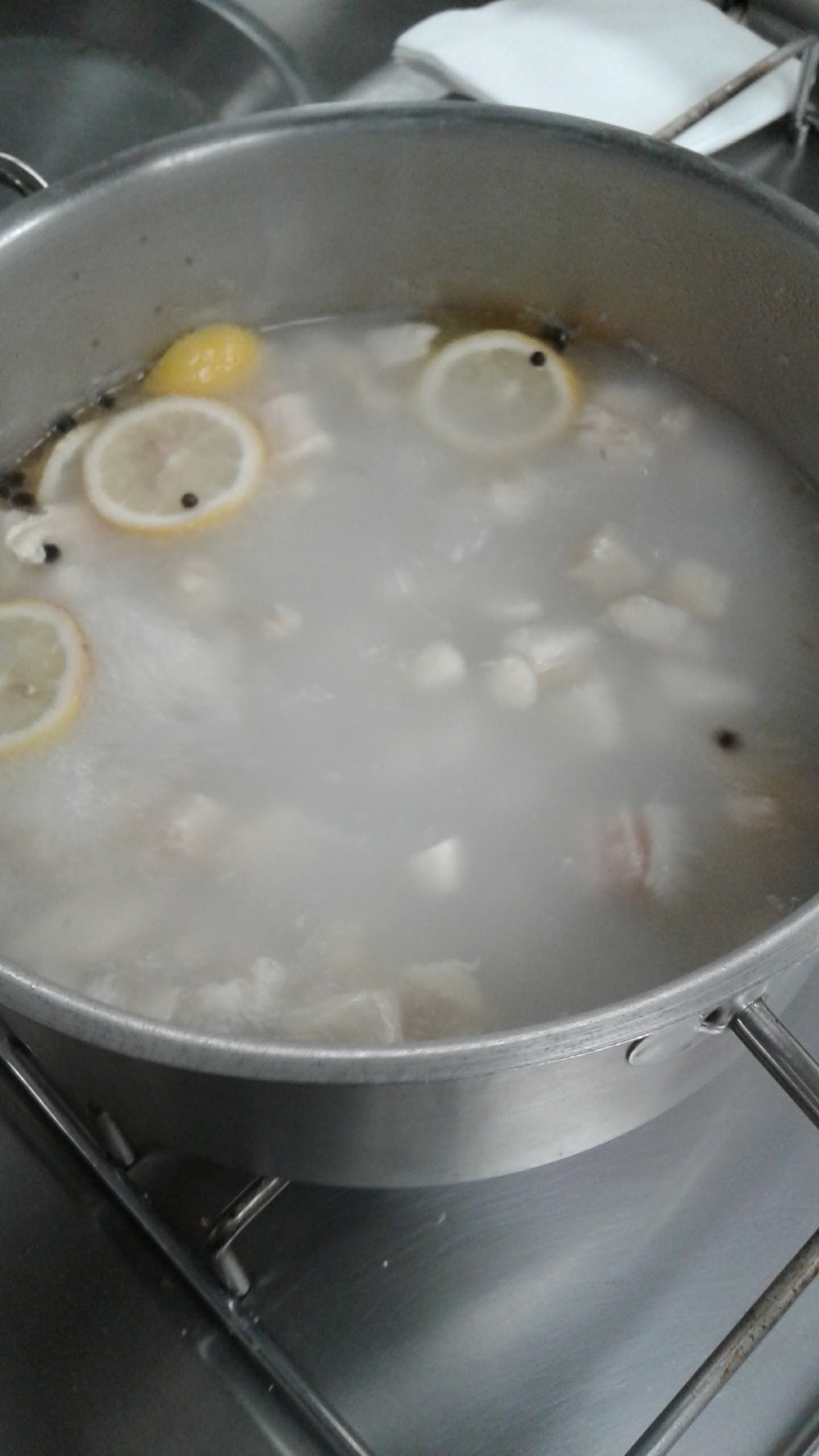 In a large stockpot boil the tripe again with the sliced lemon and whole black peppercorns for 30-40 minutes.