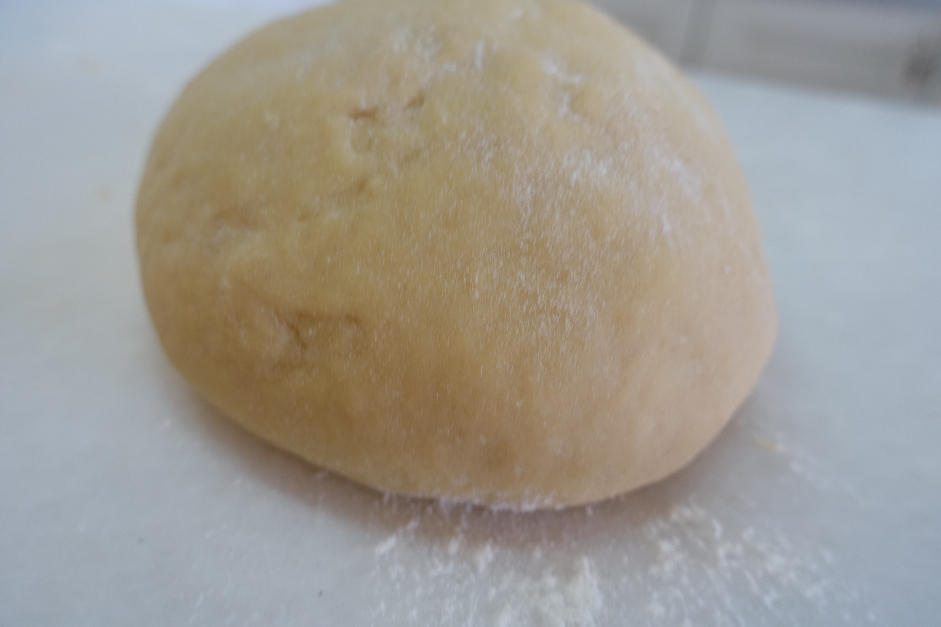 Continue stirring until a dough forms (it will start to get difficult to stir by hand at this point but don’t worry). Then place the dough on a floured surface and knead it well for 7-8 minutes. Then cover it with a dish towel and let it rise in a warm place for 30-60 minutes.