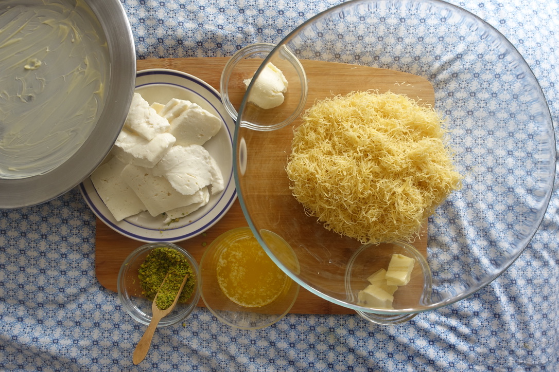 The beauty of künefe, is that you can make it at home pretty easily. You just need the kadayif, which I have found can be difficult to find in some countries even in the Middle East especially since there are different variations of künefe such as the one in Nablus that uses a finely ground kadayif instead of the shredded kind.